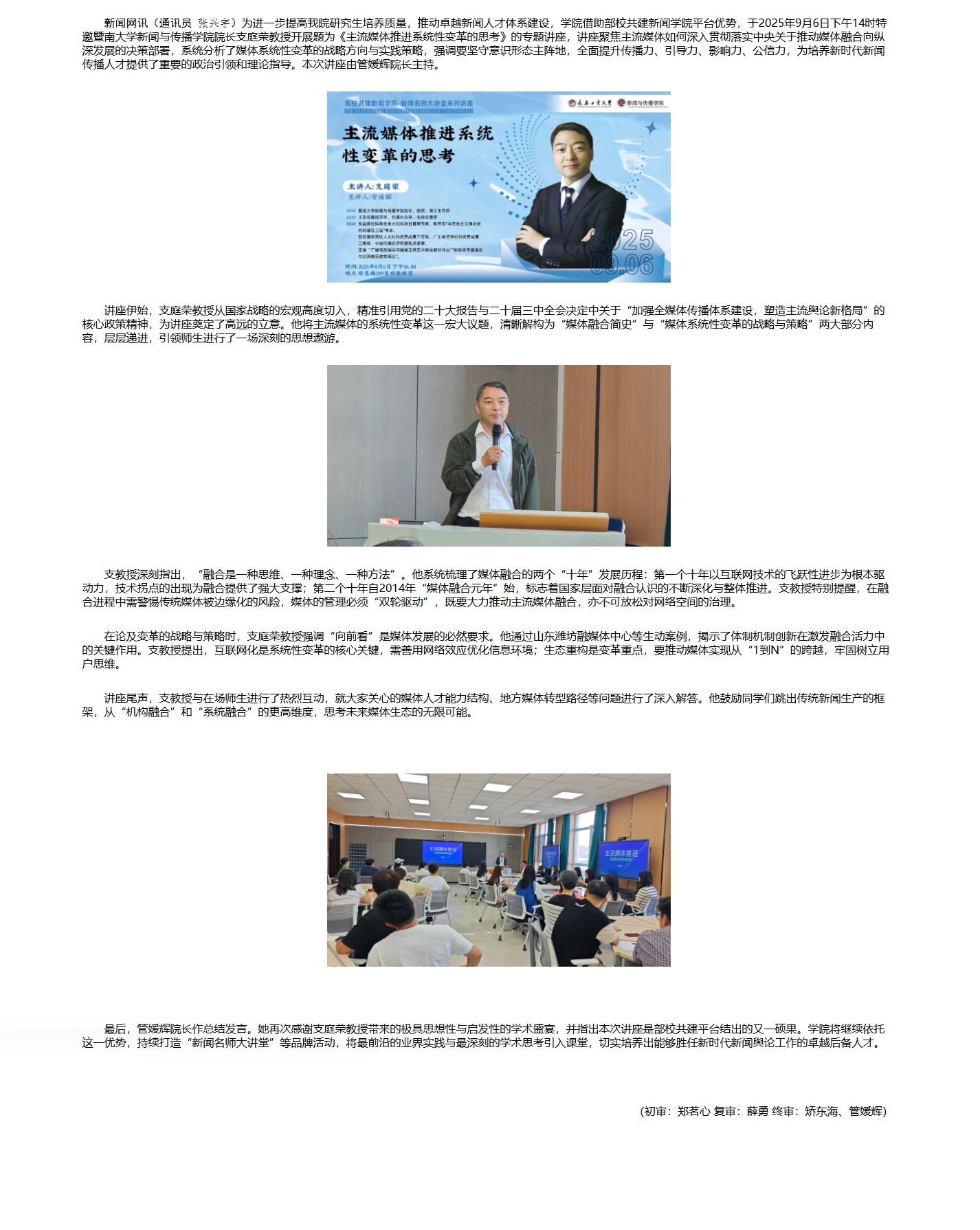 新澳彩官方网站 新澳彩 部校共建新闻新澳彩 ——新闻名师大讲堂系列讲座《主流媒体推进系统性变革的思考》